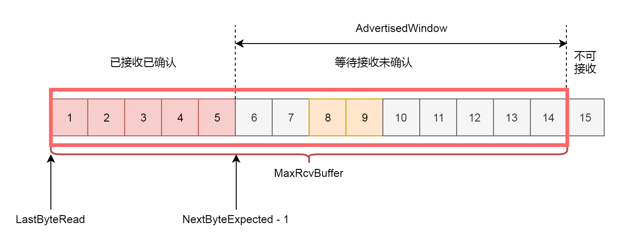 因为滑动窗口的存在,接收方的缓存也要分成了三个部分。
