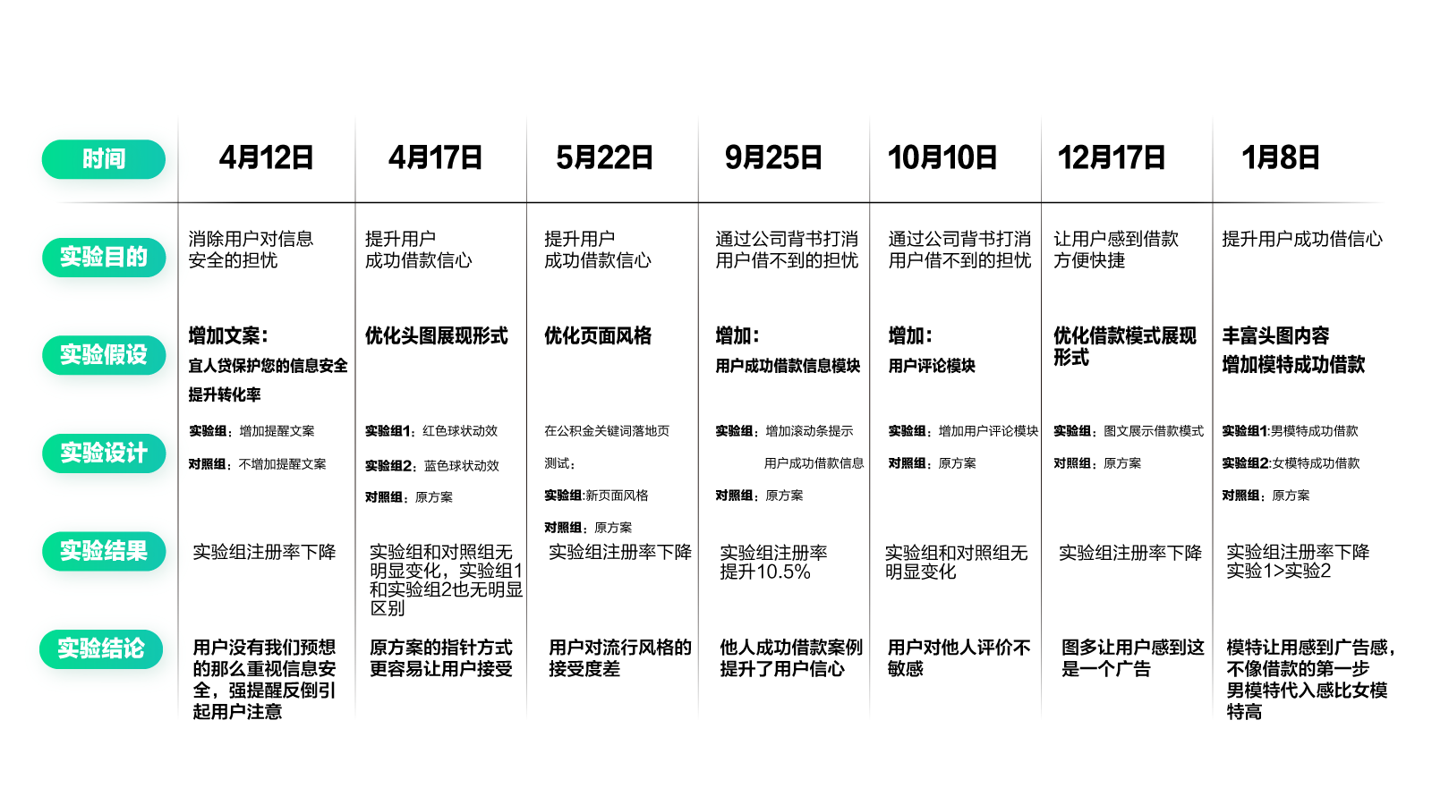 另外,**做实验需要考虑时间周期。**比如一个大型的首页改版,一般要看一个月以上的数据,因为一开始用户会感觉不习惯,经过一段时间才能养成新的习惯。所以不能看几天数据就盲目判断结果。