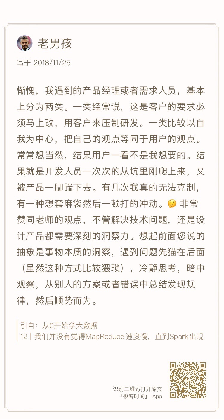 最后还是老规矩,我精选了三木子、Lambda、hunterlodge、老男孩这几位同学的留言,贴在今天的文稿里分享给你,希望同学们的思考也能对你有所启发。
