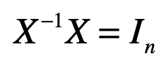 如果有矩阵$X$,我们把它的逆矩阵记做$X^{-1}$,两者相乘的结果是单位矩阵,写成公式就是这种形式: