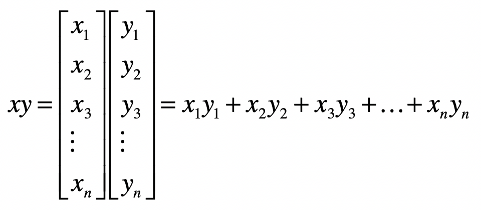 向量之间的乘法默认是点乘,向量x和y的点乘是这么定义的: