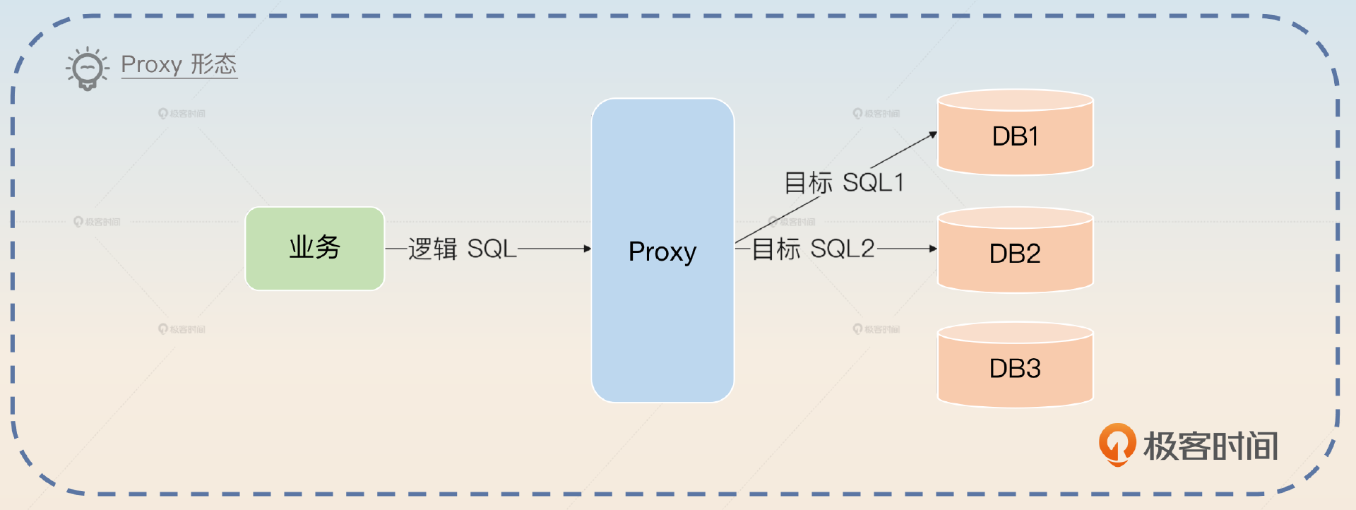 Proxy 形态性能最差,因为所有的数据库查询都发给了它,很容易成为性能瓶颈。尤其是单机部署 Proxy 的话,还面临着单节点故障的问题。它的优点就是跟编程语言没有关系,所以部署一个 Proxy 之后可以给使用不同编程语言的业务使用。同时,Proxy 将自己伪装成一个普通的数据库之后,业务方可以轻易地从单库单表切换到分库分表,整个过程对于业务方来说就是换了一个数据源。