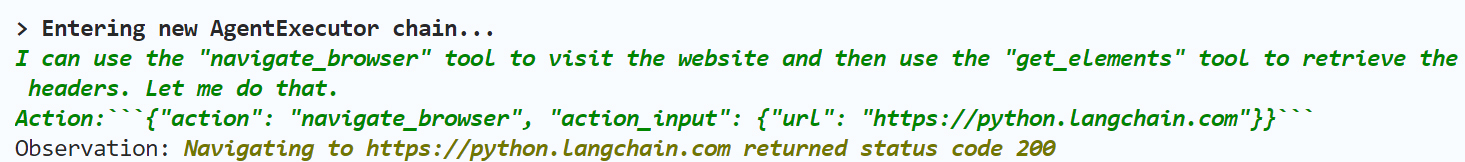 Action:```{“action”: “navigate_browser”, “action_input”: {“url”: “https://python.langchain.com”}}```
