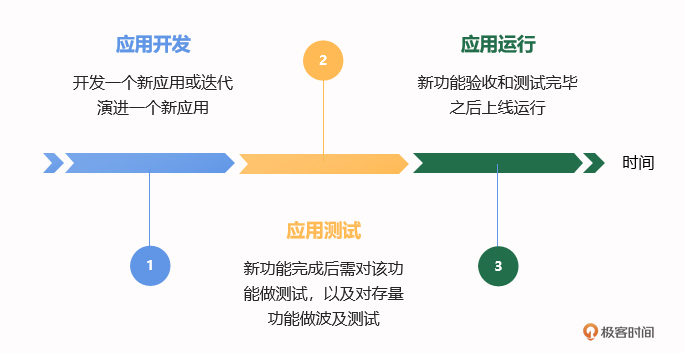 在测试时,新功能完成后需要进行功能测试,以确保其按预期工作。同时,还需对已有功能进行回归测试,以检查新功能的引入是否对现有系统造成影响。这一阶段利用自动化测试工具和手动测试相结合的方法,确保应用的稳定性和可靠性。这个专栏的 21~23 讲从理论到实践详细讨论了如何实现自动化生产应用自动化测试用例的方法。