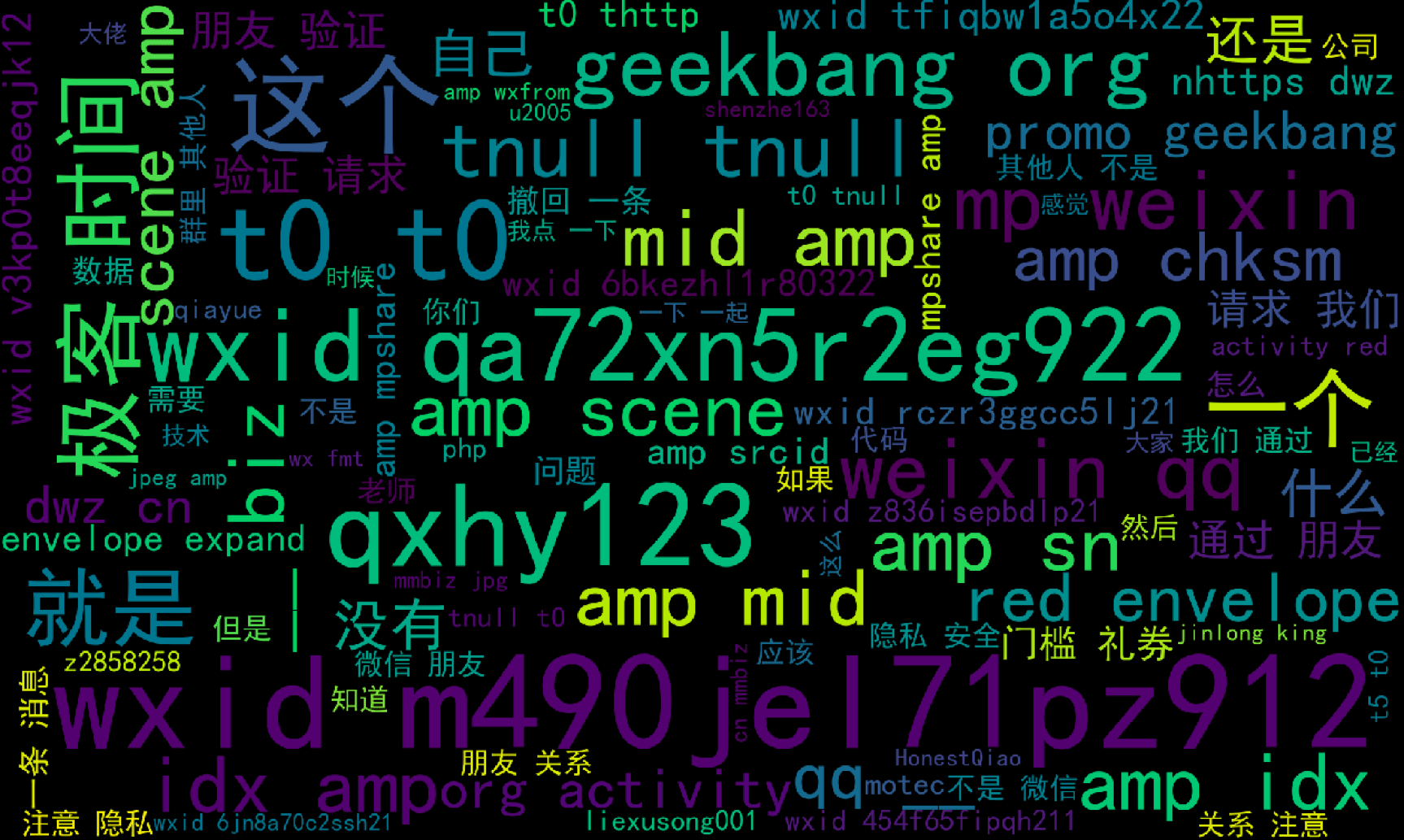 最后,因为统计出来的聊天记录会包括大量的HTML标签,这里我们还需要采用正则表达式匹配的方式将content中的HTML标签去掉,然后调用create_word_cloud函数生成词云,结果就是文稿中的图片所示啦。