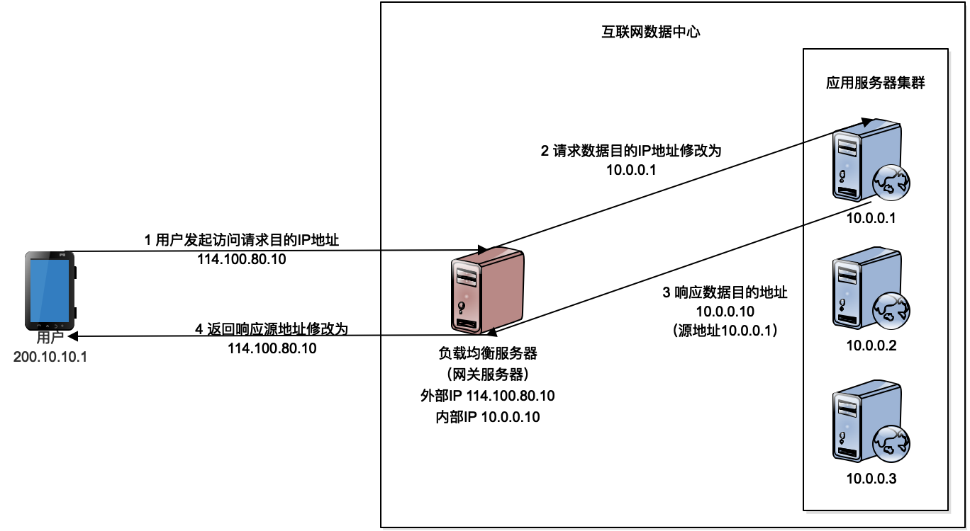 反向代理负载均衡是工作在应用层网络协议上的负载均衡,因此也叫应用层负载均衡。应用层负载均衡之下的负载均衡方法是在TCP/IP协议的IP层进行负载均衡,IP层是网络通讯协议的网络层,所以有时候叫网络层负载均衡。它的主要工作原理是当用户的请求到达负载均衡服务器以后,负载均衡服务器会对网络层的数据包的IP地址进行转换,修改IP地址,将其修改为应用服务器的IP地址,然后把数据包重新发送出去,请求数据就会到达应用服务器。