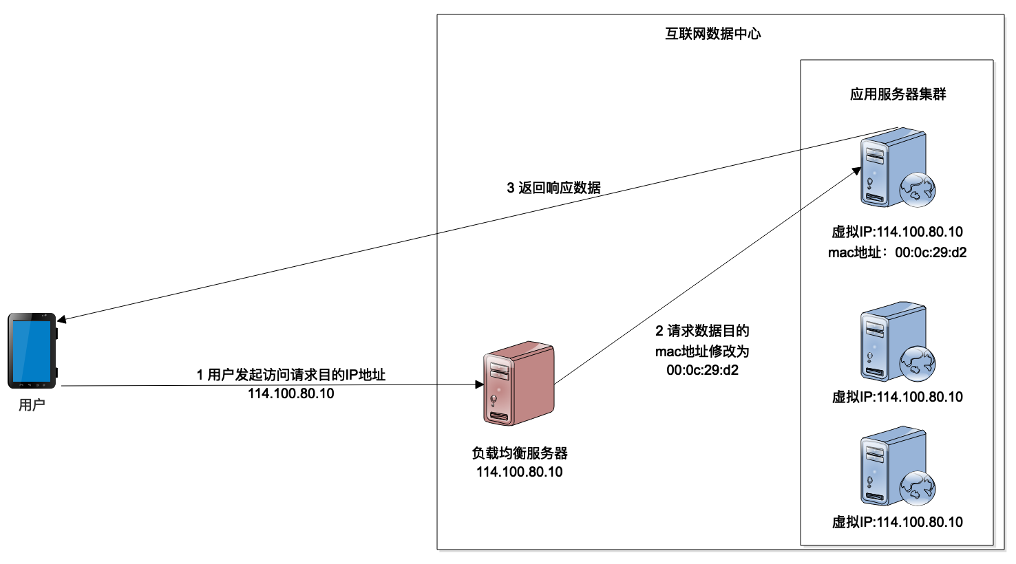 数据链路层负载均衡可以解决响应数据量大而导致的负载均衡服务器输出带宽不足的问题。也就是说,负载均衡服务器并不修改数据包的IP地址,而是修改数据链路层里的网卡mac地址,在数据链路层实现负载均衡。而应用服务器和负载均衡服务器都使用相同的虚拟IP地址,这样IP路由就不会受到影响,但是网卡会根据自己的mac地址,选择负载均衡服务器发送到自己网卡的数据包,交给对应的应用程序去处理,处理结束以后,当把响应的数据包发送到网络上的时候,因为IP地址没有修改过,所以这个响应会直接到达用户的浏览器,而不会再经过负载均衡服务器。