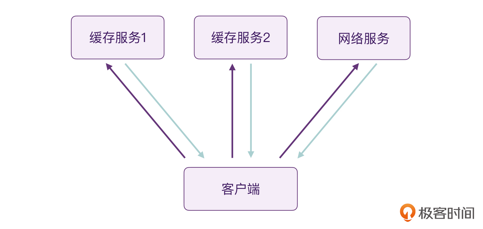 客户端,想要查询一个商品的详情。目前有两个服务:缓存服务,速度快但信息可能是旧的;网络服务,速度慢但信息一定是最新的。