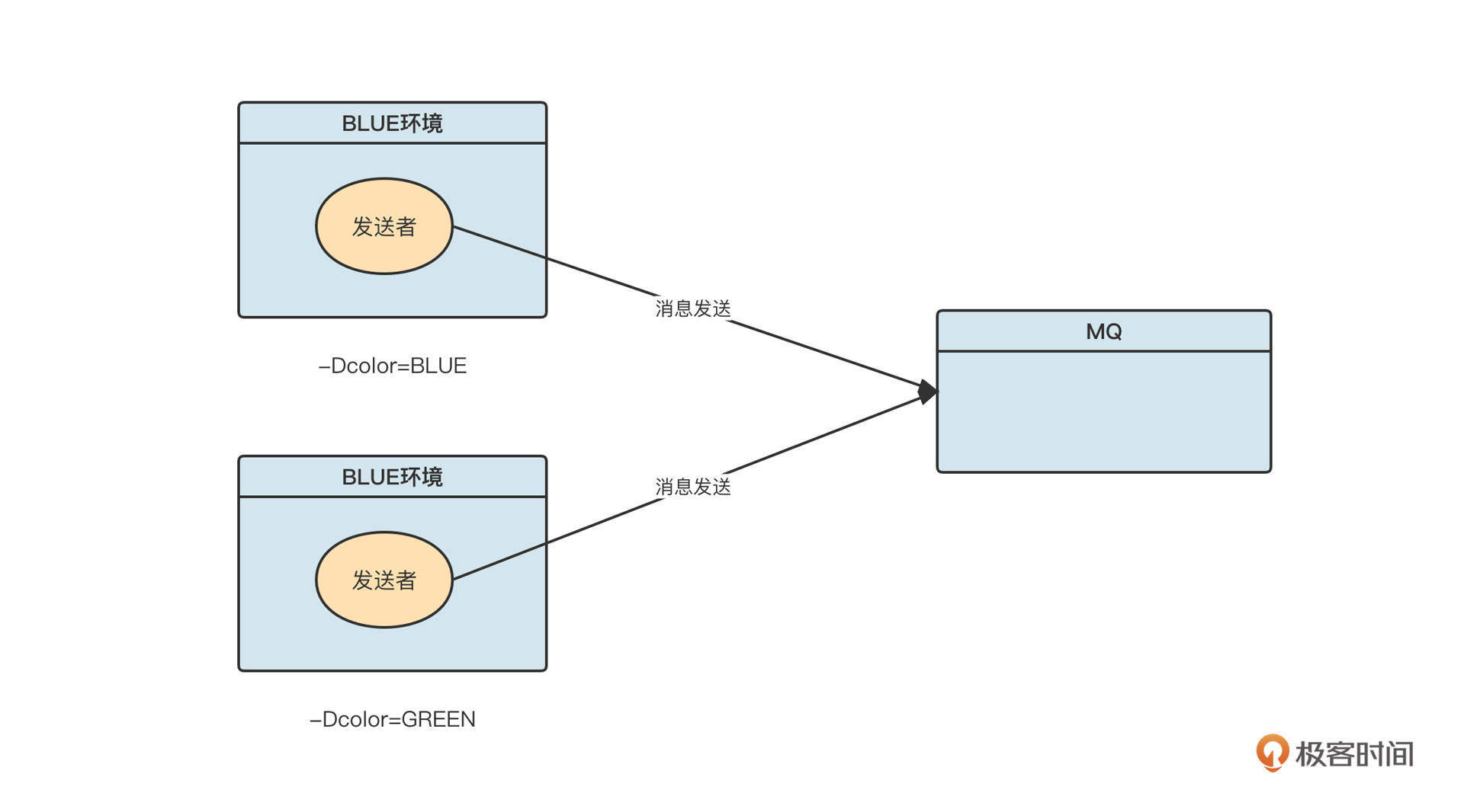 这么乍一看,蓝颜色的消费者消费color=BLUE的消息,绿颜色的消费者消费color=GREEN的消息,这不是很“完美”地解决了蓝绿发布的问题了吗?