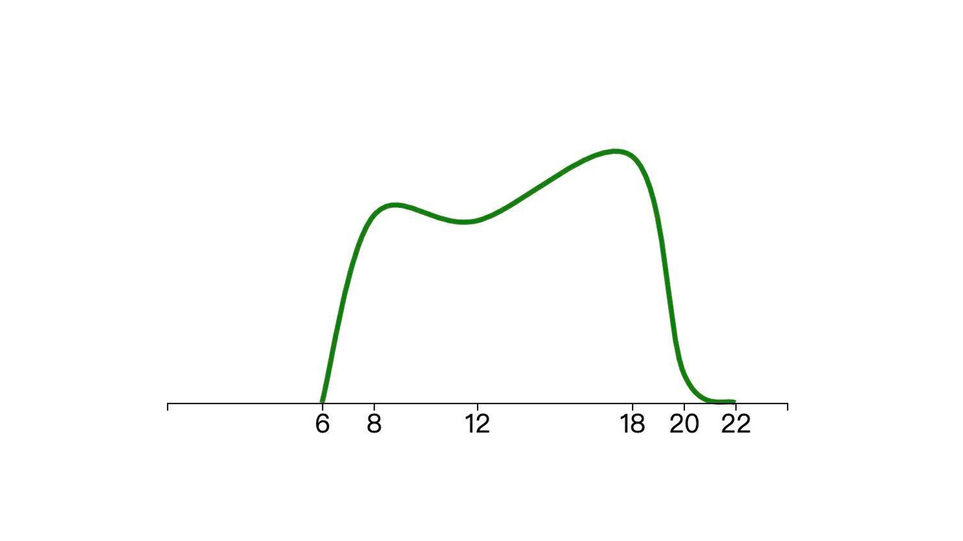 最后,我们能从这张图上看出些什么信息呢?在这张图上,我们看到公园的游客数有两个高峰期,分别是早8点和傍晚6点,而12点的游客是比较少,晚上8点之后到10点闭园之前游客的数量是最少的。