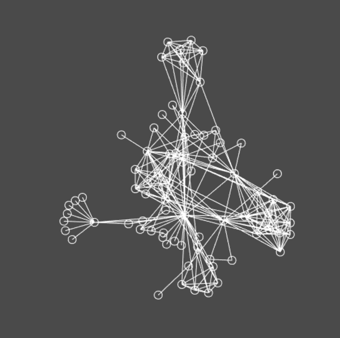 将节点和连线绘制完成之后,力导向图的初步结果就呈现出来了。