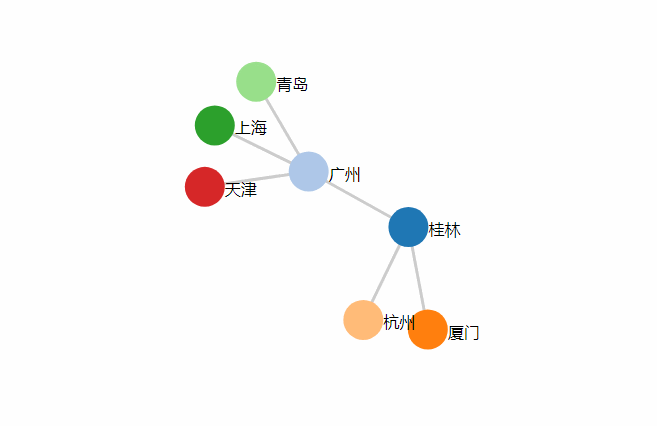 我们看到,力导向图不仅能够描绘节点和关系链,而且在移动一个节点的时候,图表各个节点的位置会跟随移动,避免节点相互重叠。