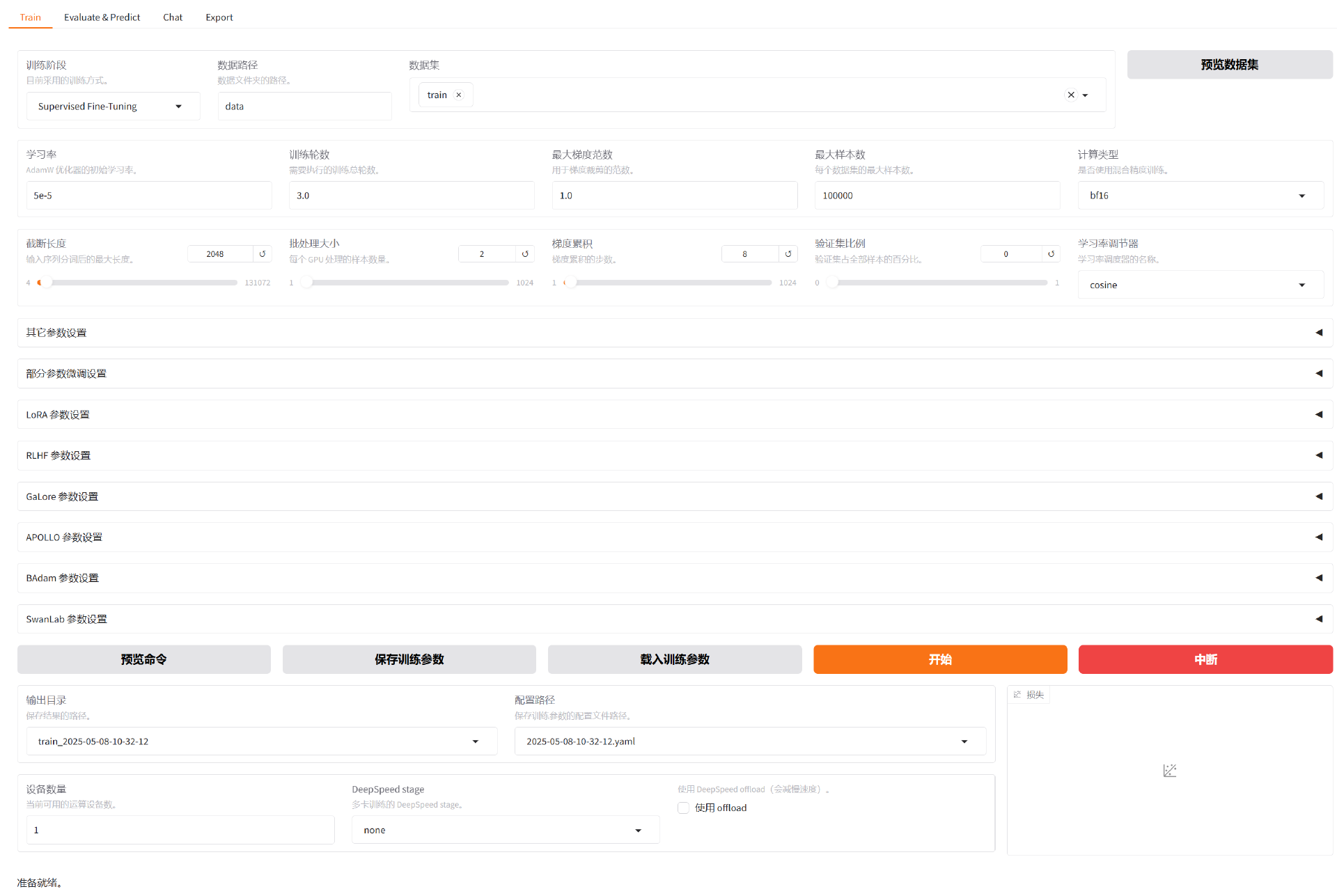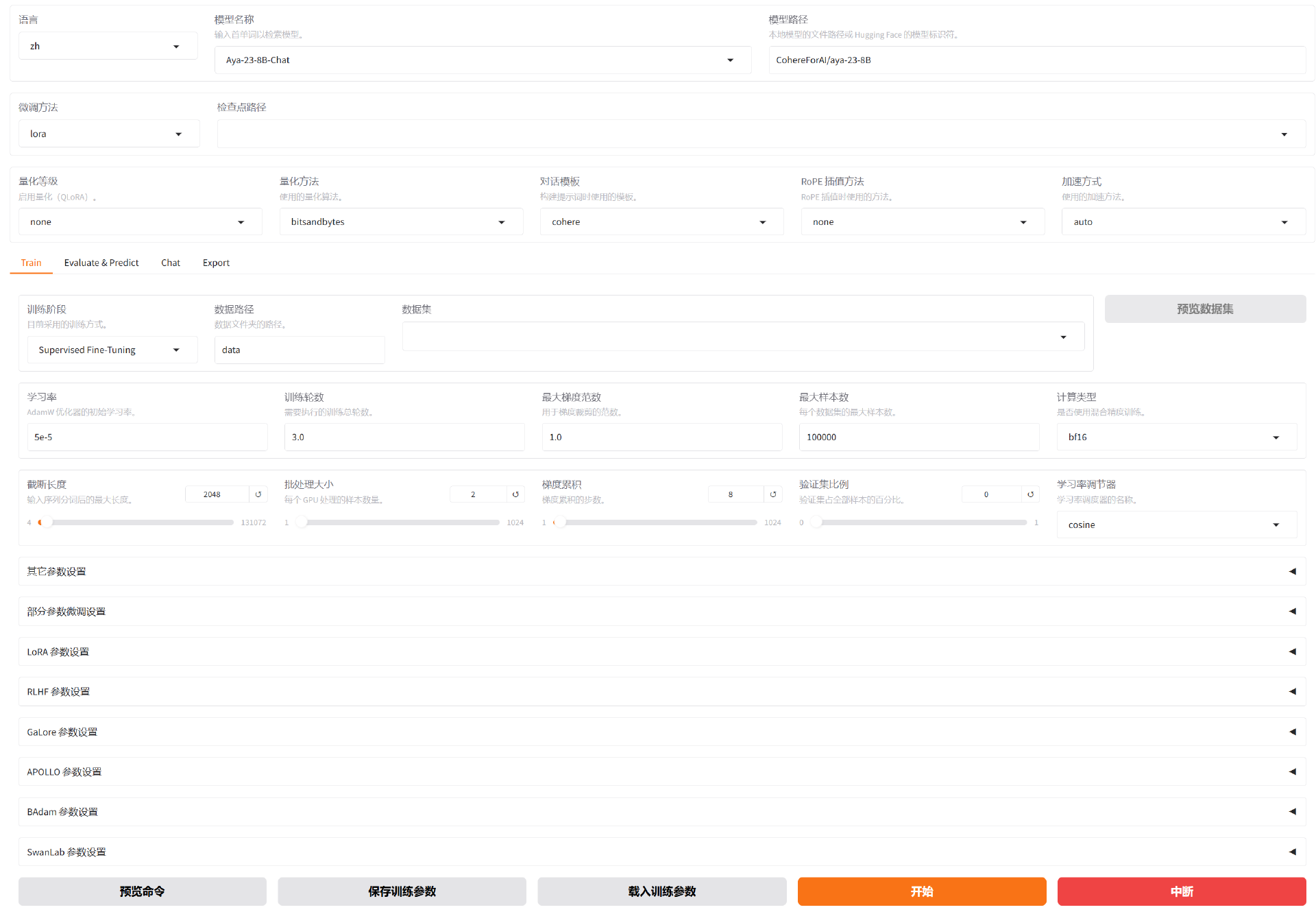 1 | llamafactory-cli webui |
