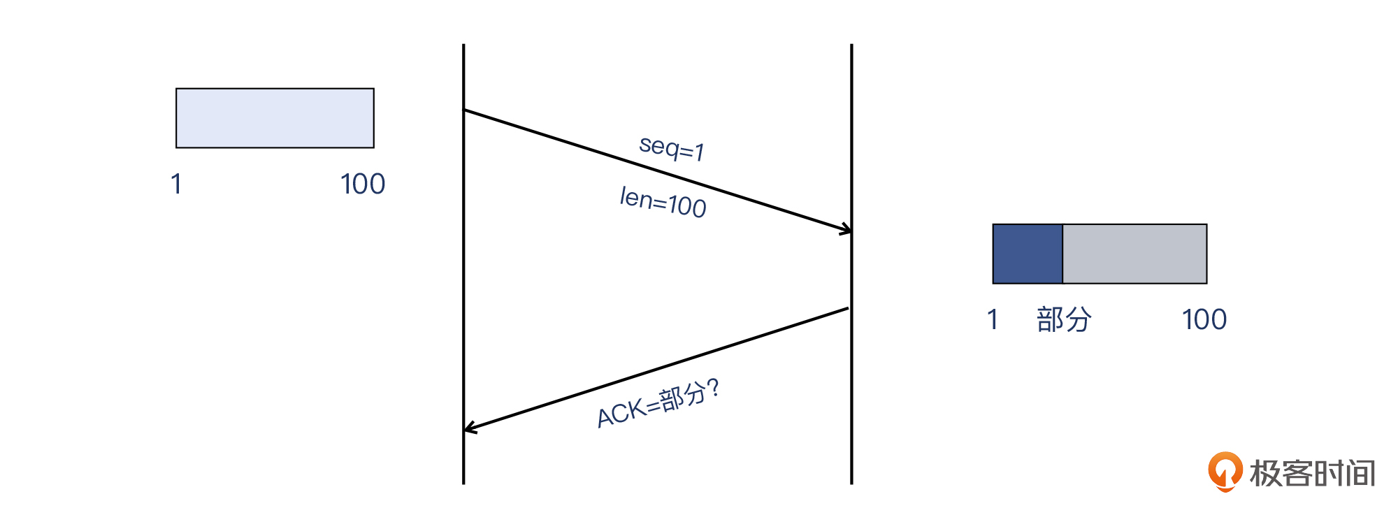 这里,我再提醒你一个关键点:确认号本身代表字节数,所以它是字节级别的,而不是报文级别。也就是说,确认号是精确到某个字节的,而不是某个报文。