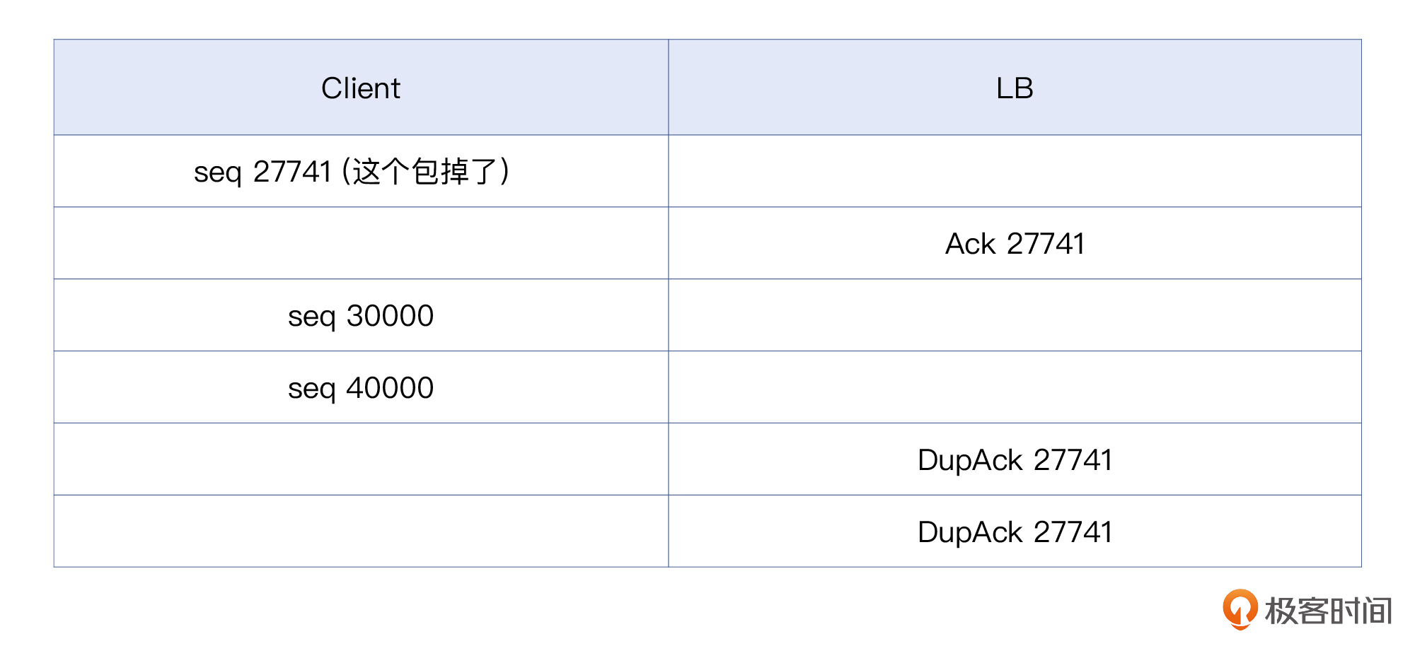 所以,LB就通过DupAck包向客户端宣告:“我这边只确认收到序列号27741之前的数据包。”