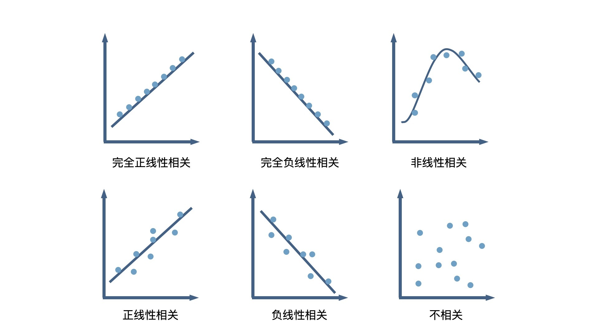 总的来说,两个数据的散点越集中在对角线,说明这两个数据的相关性越强,当然这么说还不够严谨只是方便我们记忆而已。这里,我找到了一张散点图和相关性之间关系的总结图,你可以多了解一下。