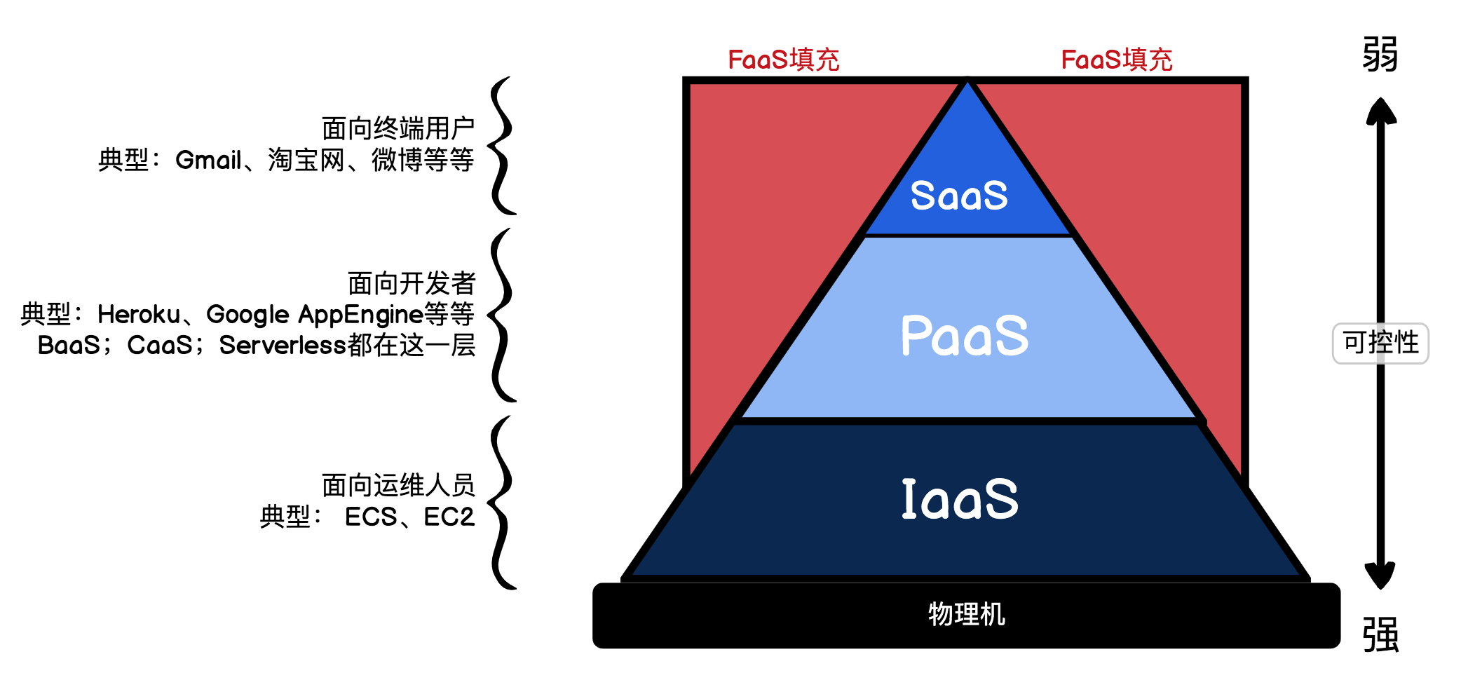现在云服务商都提供数以百计的各种服务,但大体上我们可以分为以下3类:IaaS、PaaS和SaaS。