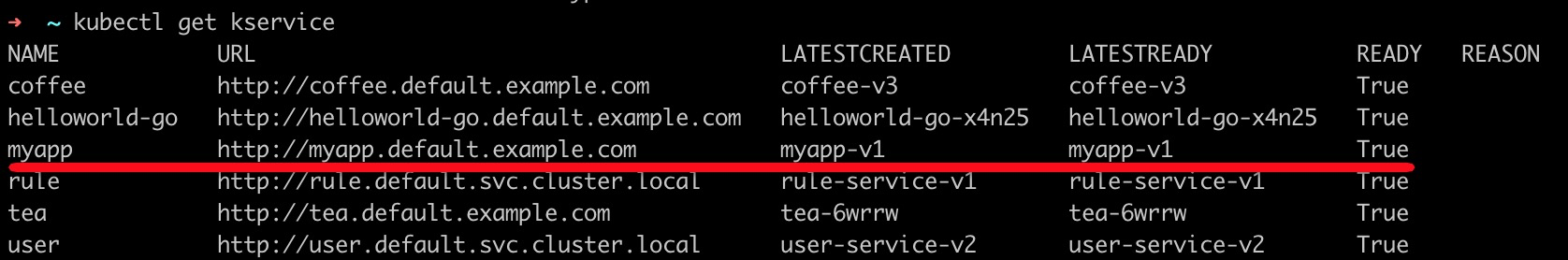 1 | kubectl get kservice |