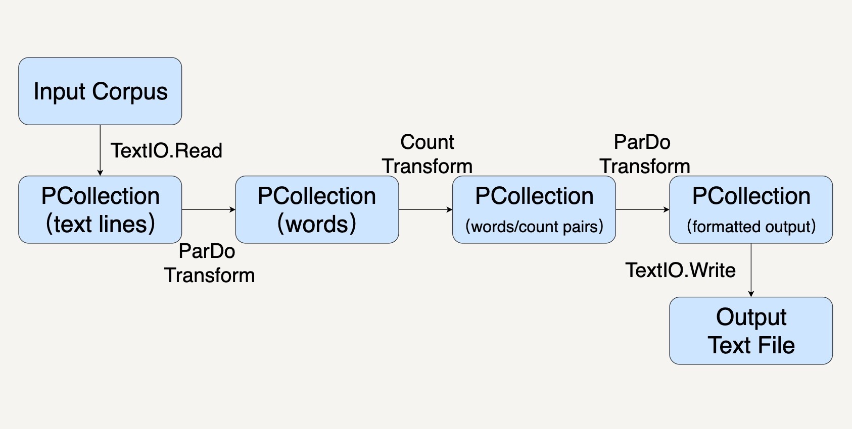 那么我们怎样在Beam中处理这个问题呢?结合前面所学的知识,我们可以把Pipeline分为这样几步: