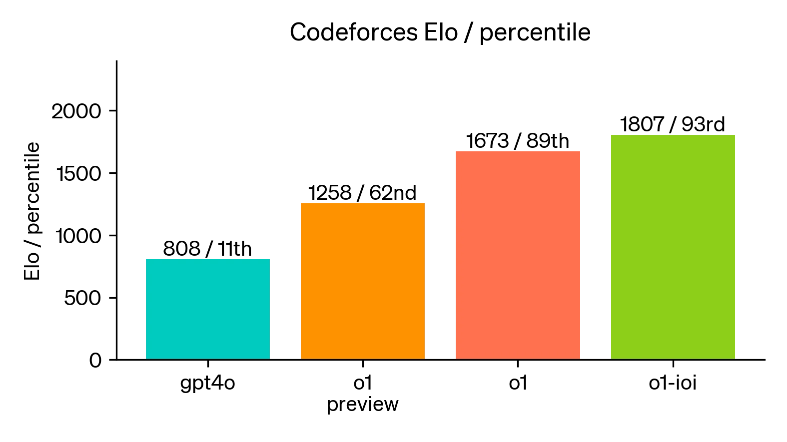 比如我们看到的 GPT-4o1 中强大的推理能力,就是来自于思维链的赋能。它甚至已经能在信息学竞赛中超过人类的表现。