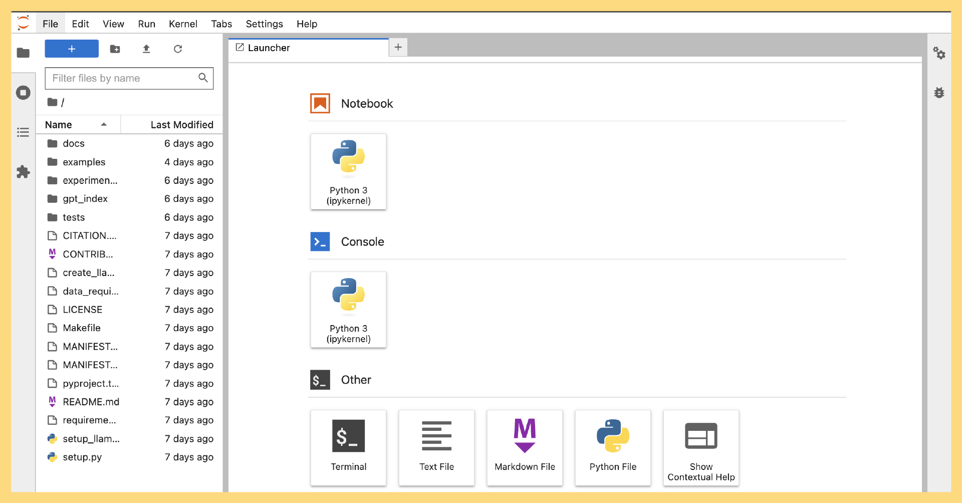 安装完JupyterLab之后,你只需要把刚才我们获取到的API Key设置到环境变量里,然后启动JupyterLab。你可以从浏览器里,通过Jupyter Notebook交互式地运行这个课程后面的代码,体验OpenAI的大语言模型神奇的效果。
