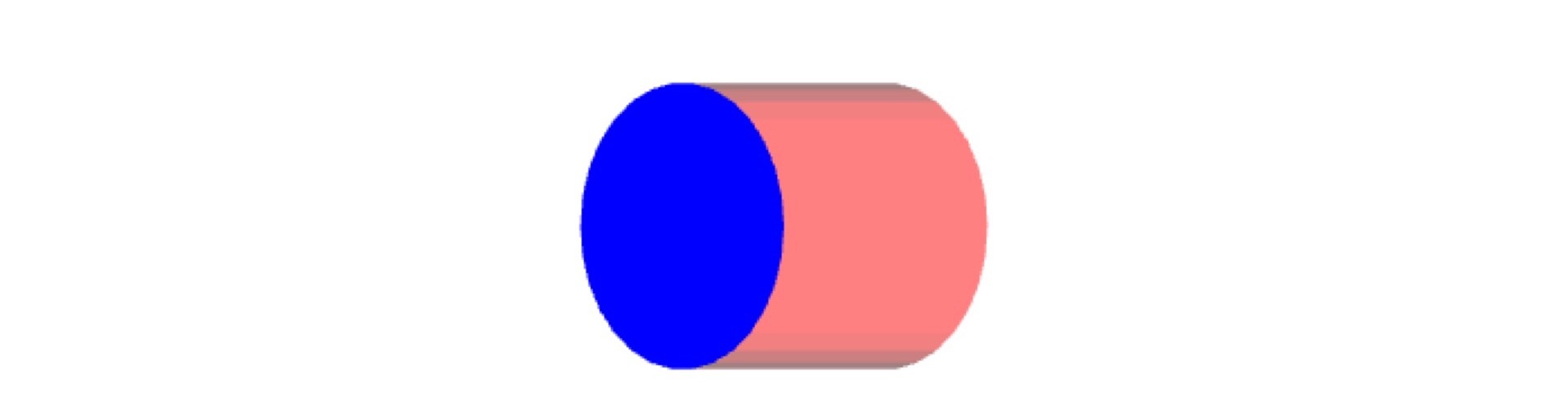 接下来,我们先试试对圆柱体进行正投影。假设,在正投影的时候,我们让视景体三个方向的范围都是(-2,2)。以刚才的相机位置为参照(任何一个位置观察都一样,不管物体在哪里,都是只有之前大小的一半。因为视景体范围增加了),我们绘制出来的圆柱体的大小只有之前的一半。这是因为我们通过投影变换将空间坐标范围增大了一倍。
