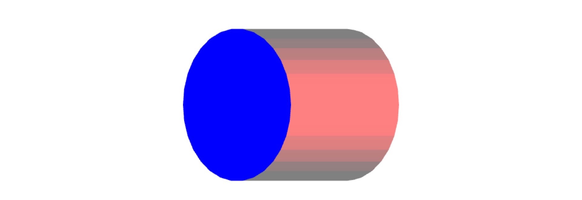 举个例子,如果我们修改模型矩阵,让圆柱体沿x、y轴平移,向右上方各平移0.5,那么圆柱中x、y值大于1的部分都会被剪裁掉,因为这些部分已经超过了Canvas边缘。操作代码和最终效果如下: