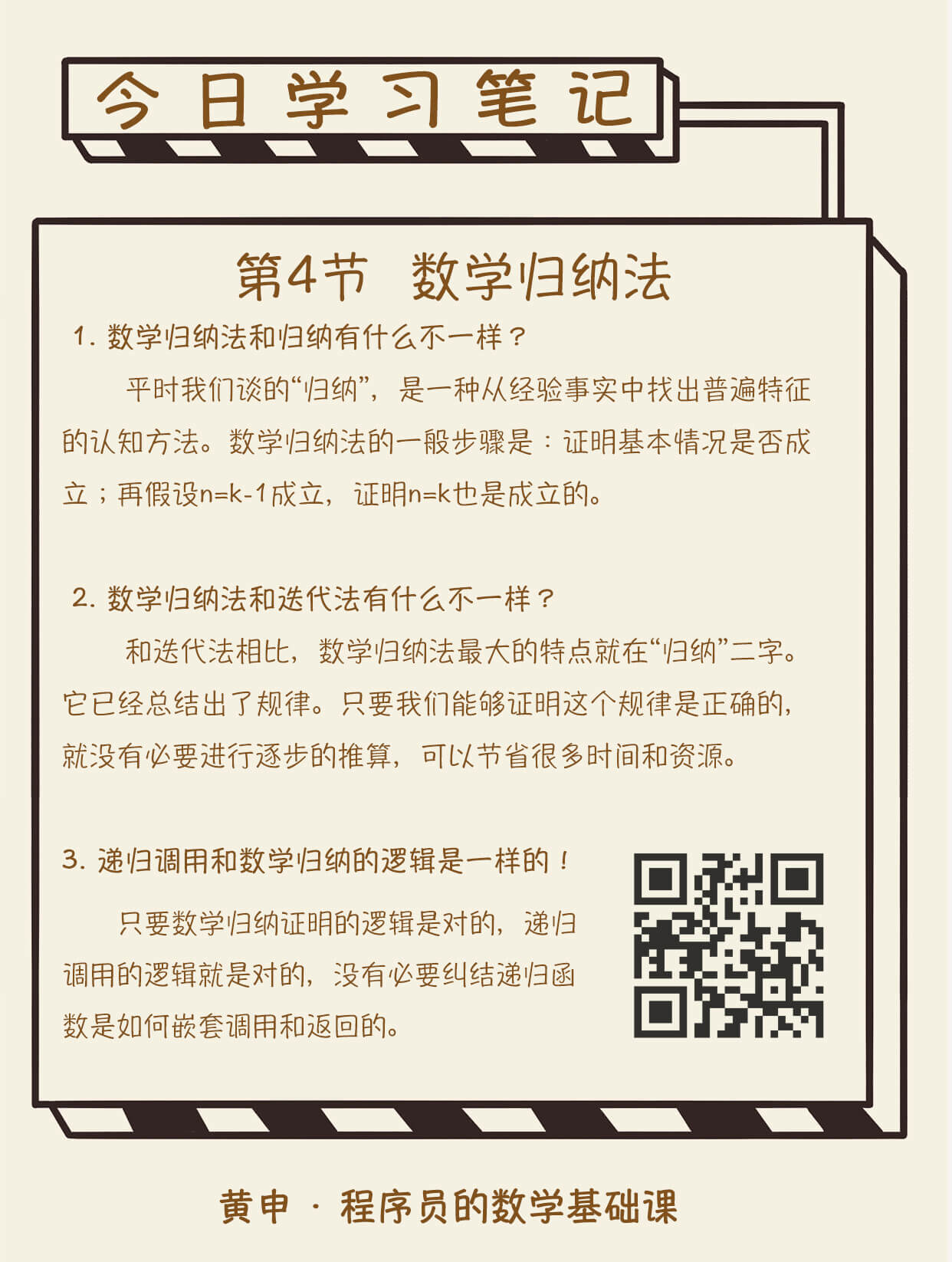 今天,我介绍了一个编程中非常重要的数学概念:数学归纳法。