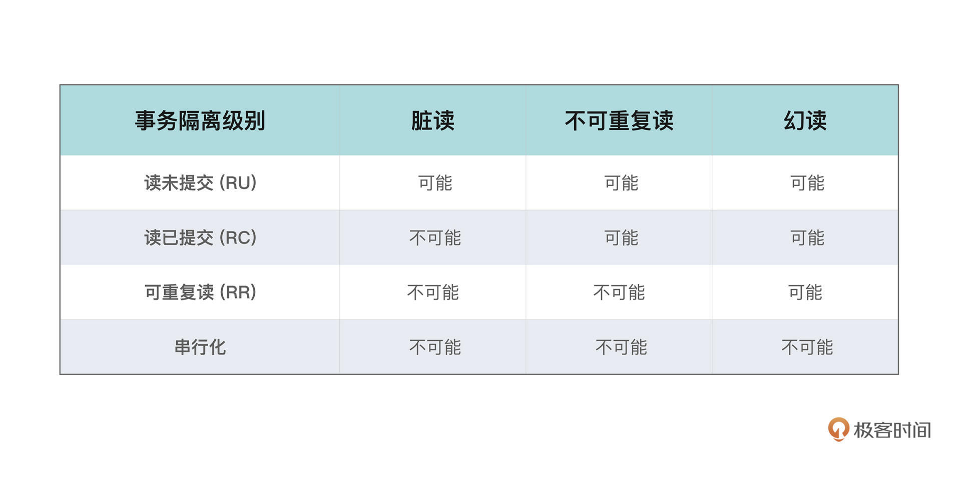 SQL标准定义了四种不同的事务隔离等级的,相信你也一定有所听闻,按照隔离级别由弱到强,分为:读未提交、读已提交、可重复读和串行化。