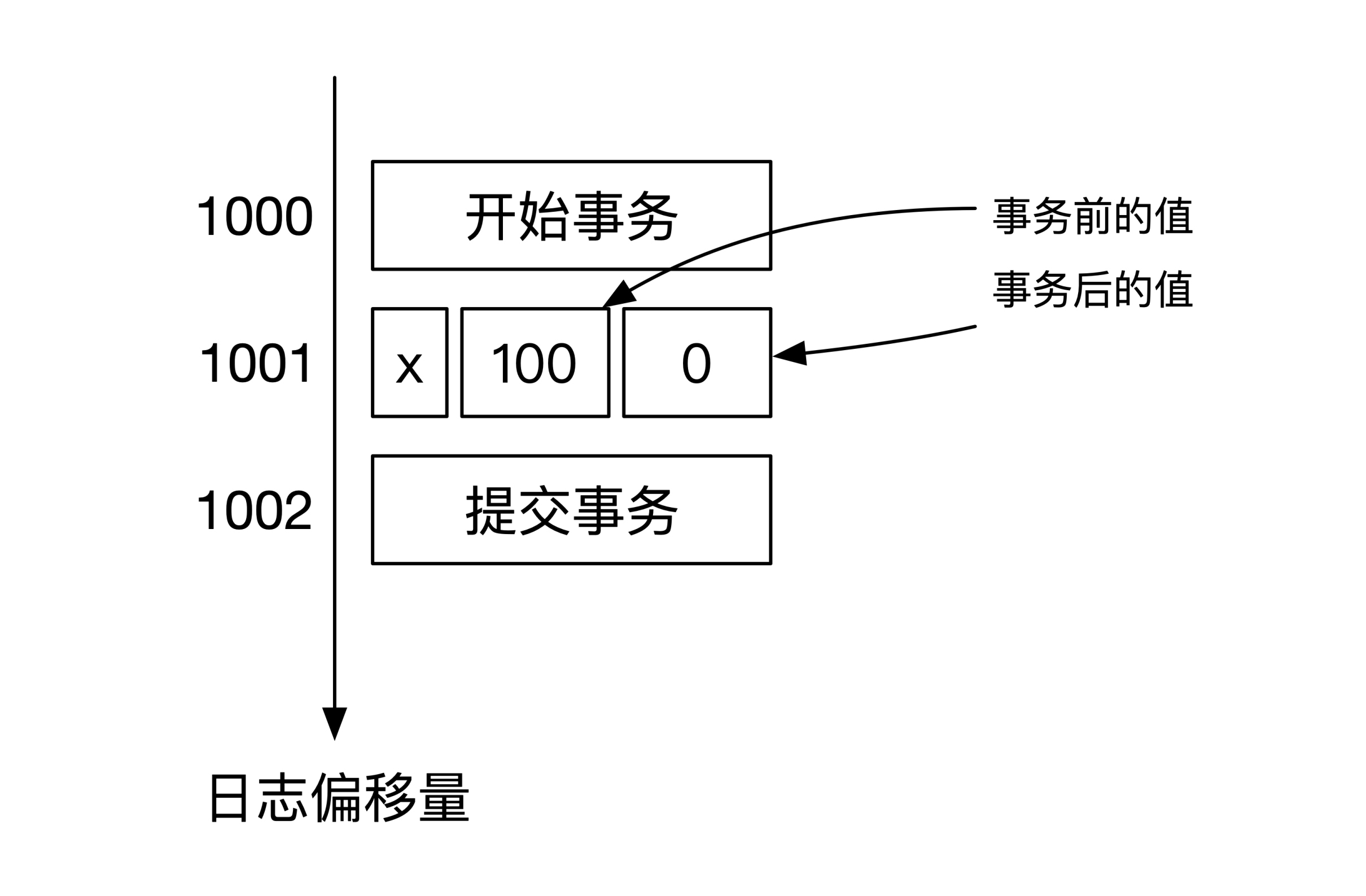 这里给你举个例子。假设我们通过一个事务将数据库 A 里 x 的值从100变为0 。伪代码如下: