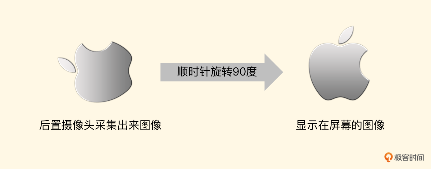 如果是后置摄像头,那么我们应顺时针旋转90度。