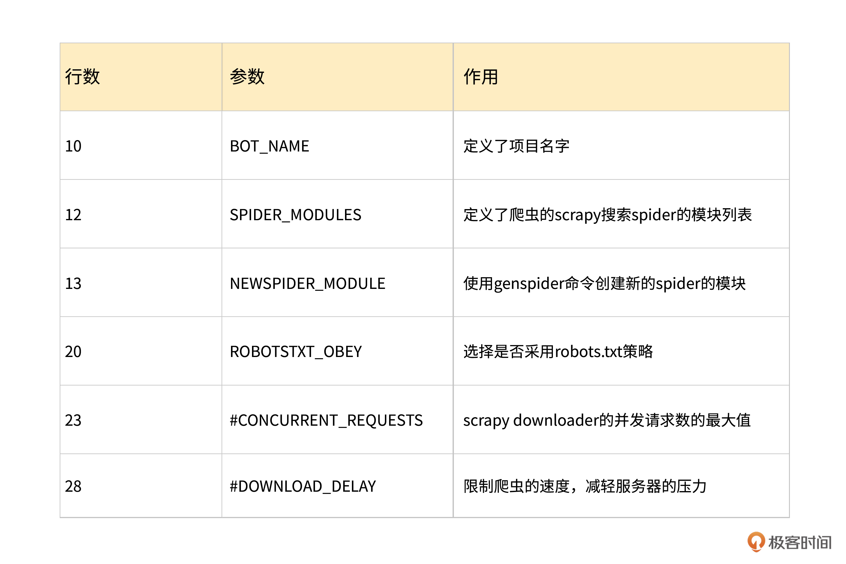 在第28行中,我们可以看到一个DOWNLOAD_DELAY参数,这个参数实际上是告诉爬虫,我们的下载器在下载页面时,两个页面之间的等待间隔。这个参数主要是为了限制爬虫的速度,减轻服务器的压力。