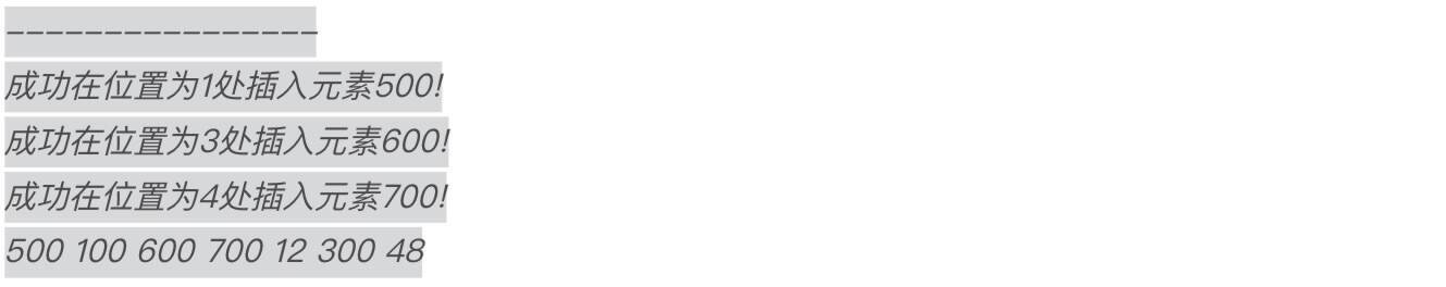 | cout << "----------------" << endl; slinkobj.ListInsert(1, 500); slinkobj.ListInsert(3, 600); slinkobj.ListInsert(4, 700); slinkobj.DispList();