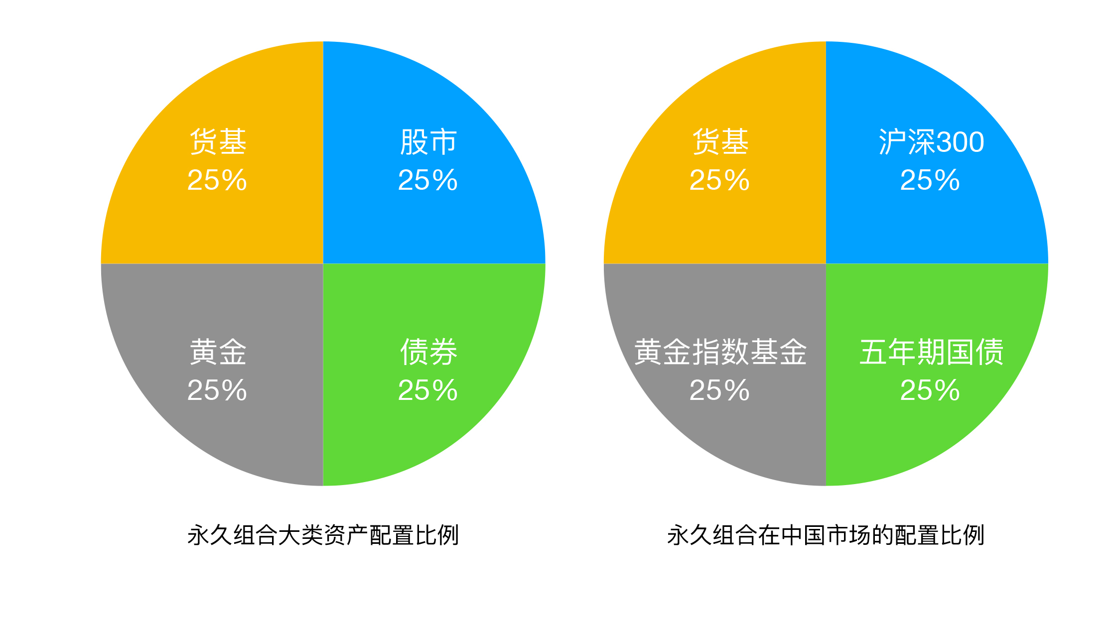 当然,中国市场的具体投资标的肯定是不同的,把这个方案套用到中国市场就是“25%沪深300指数基金,25%的五年期中国国债,25%的黄金指数基金,25%货币基金”。