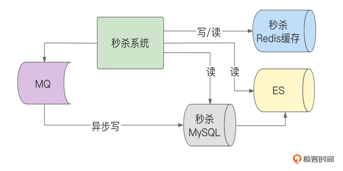 如上图,假设当秒杀的Redis缓存出现故障时,我们就可以通过降级开关,快速将读请求降级到ES上。或者当Redis和ES同时出现故障时(现实中很少出现同时故障的场景),我们还是可以通过降级开关将流量切换到数据库上,让数据库暂时承压来完成读请求服务。