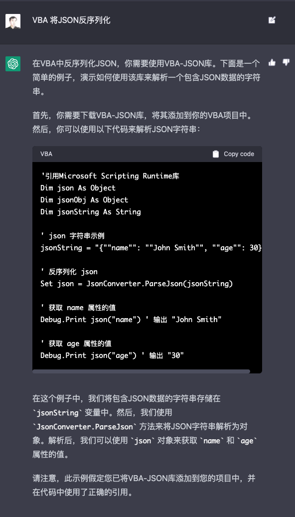 根据ChatGPT给出的详细操作步骤,我们可以通过快捷键 ALT + F11 打开Excel下的VBA编辑器,然后把对应的Excel代码复制进去;也能够在Excel的表格界面里,通过快捷键 ALT + F8 唤起宏的对话框,执行这段宏。你可以试一下,这段VBA的宏的确能够将我们表格里面的第一列,复制到第二列里面。