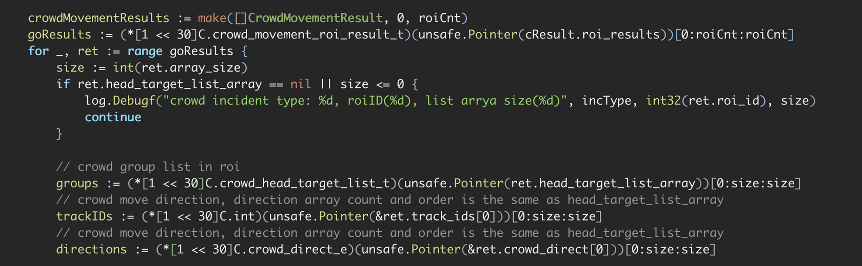 例如,由于很多机器学习库是用C或者C++完成的,因此需要使用CGO的技术。我曾经深度写过CGO相关的项目,可以说是苦不堪言。你可以看看下面这段代码,在这里,开发会面临各种问题:没有编辑器的提示,语法繁琐,难以调试,内存不受到Go运行时的管理。所以说不到万不得已,不要使用CGO。