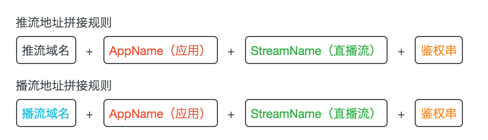 下图是生成推流与拉流地址的拼接格式: