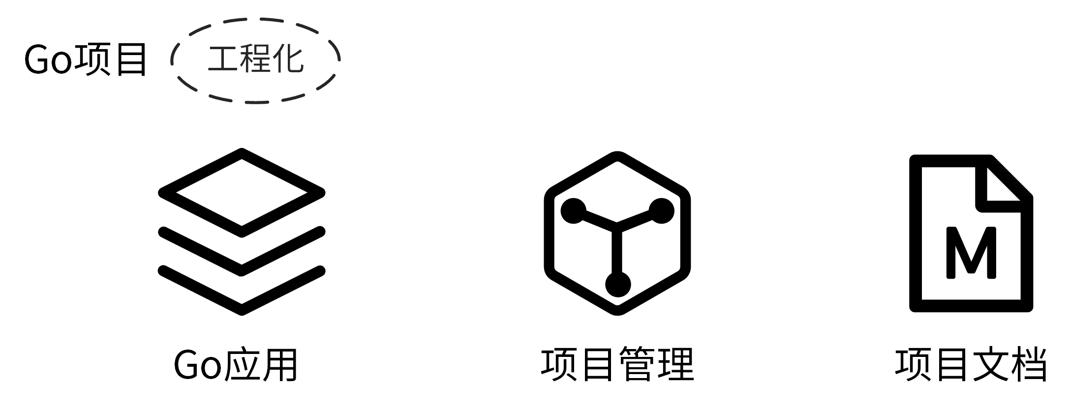 先来看第一个问题。Go项目是一个偏工程化的概念,不仅包含了Go应用,还包含了项目管理和项目文档: