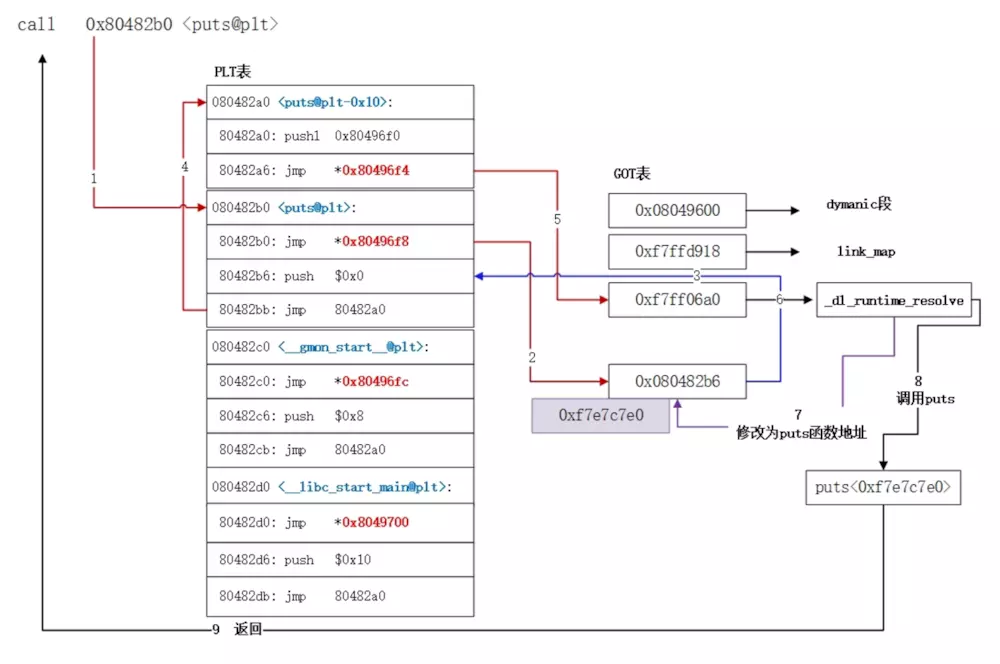如果对上面的这个调用流程还有疑问,你可以参考《GOT表和PLT表》这篇文章,它里面有一张图非常清晰。