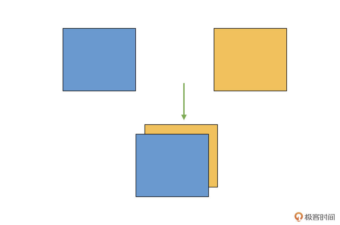 为了让你加深理解,我们还是结合具体例子来看看。假设我们有两个二维矩阵Tensor,把它们“堆叠”放在一起,构成一个三维的Tensor,如下图: