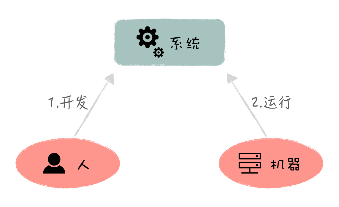 系统首先由人来开发,然后由机器来运行,人和机器共同参与一个系统的落地。