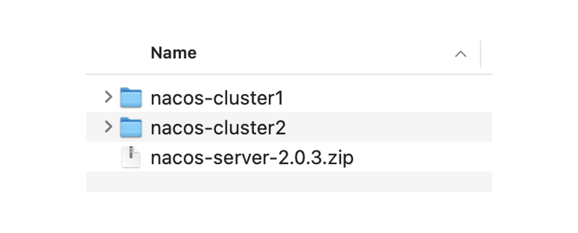 下载完成后,你可以在本地将Nacos Server压缩包解压,并将解压后的目录名改为“nacos-cluster1”,再复制一份同样的文件到nacos-cluster2,我们以此来模拟一个由两台Nacos Server组成的集群。
