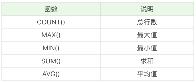 SQL中的聚集函数一共包括5个,可以帮我们求某列的最大值、最小值和平均值等,它们分别是: