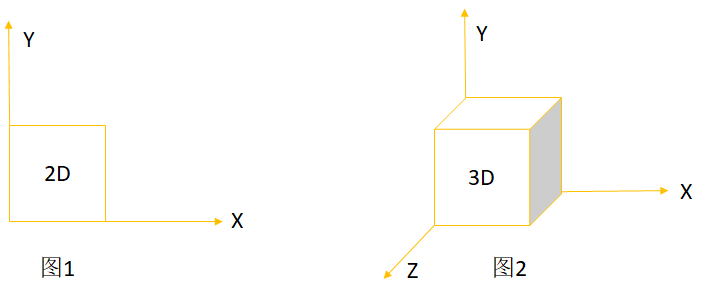 在真实世界中,我们看到的都是三维世界(3 Dimension),即立体图像。而在计算机系统中,显示的图像都是二维的,它是一个平面,有水平和垂直两个维度。下面这张图是 2D 与 3D 的对比图。