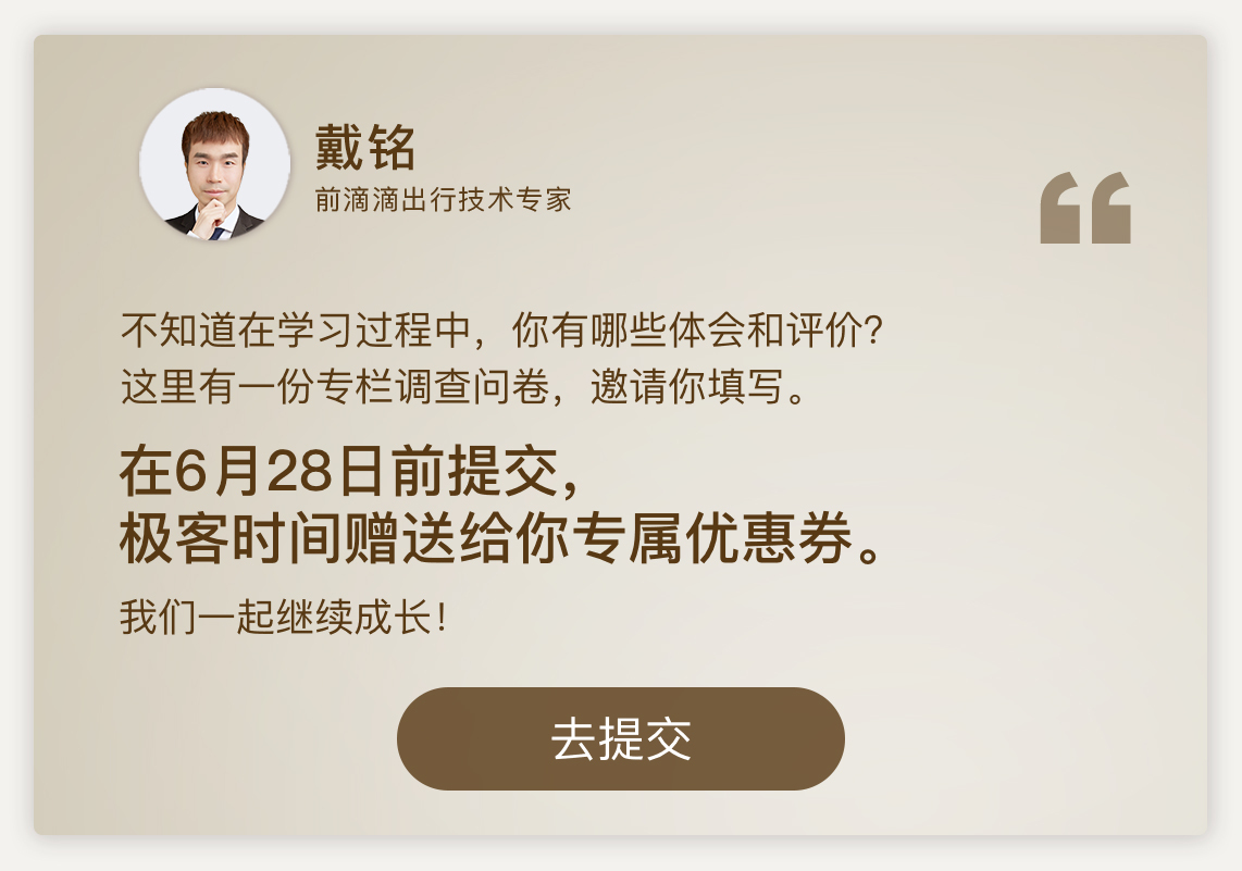 虽说更新了结束语,但专栏内容还没完全结束。在接下来的时间里,我还会更新些内容,可能是配图,也可能是文字,也可能会做一些加餐和你分享些未来得及写的内容。不过,我需要你再耐心等待一下,也希望你在等待的过程中,可以持续学习专栏内容,并多动手实践。