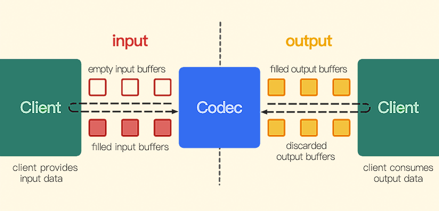 在Android 4.3系统之后,使用MediaCodec给视频编码是官方推荐的方式。尽管Android的碎片化比较严重,会导致一些兼容性问题,但是硬件编码器的性能和速度提升的收益是非常可观的。并且在4.3系统之后,我们可以通过Surface来配置编码器的输入,降低了显存到内存的数据交换时间,大大提升了整个录制场景的体验。前面我们学过使用MediaCodec来编码AAC数据,而编码视频的工作流程和音频是一样的,我们先来回顾一下MediaCodec的工作流程。