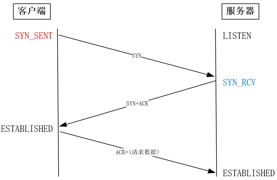 这是因为TCP不允许连接处于半打开状态时就单向传输数据,所以在三次握手建立连接时,服务器会把ACK和SYN放在一起发给客户端,其中,ACK用来打开客户端的发送通道,SYN用来打开服务器的发送通道。这样,原本的四次握手就降为三次握手了。