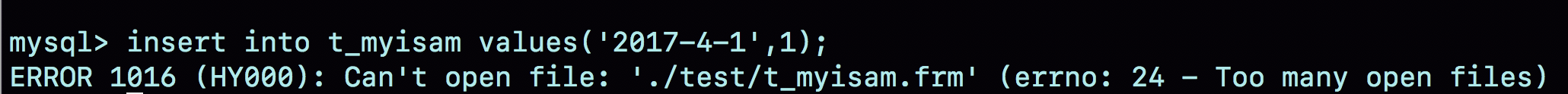 下图就是我创建的一个包含了很多分区的表t_myisam,执行一条插入语句后报错的情况。