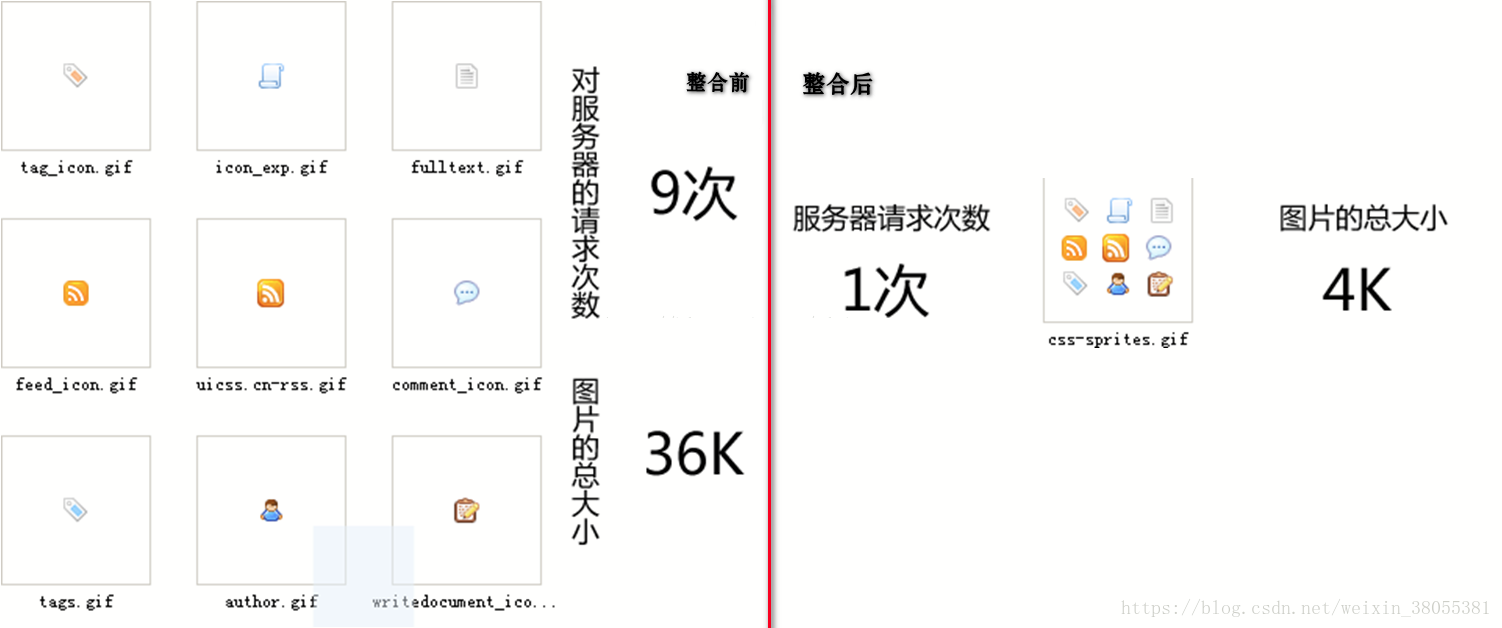 一些WEB页面往往含有几十、上百个小图片,用CSS Image Sprites技术可以将它们合成一张大图片,而浏览器获得后可以根据CSS数据把它切割还原为多张小图片,这可以大幅减少网络消耗。